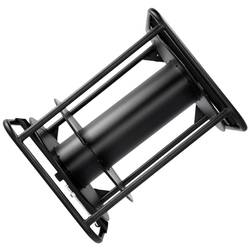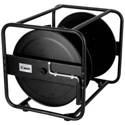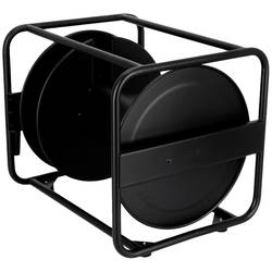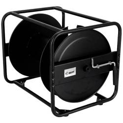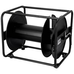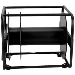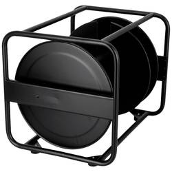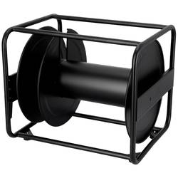 Kabelový buben z černého práškově lakovaného ocelového plechu, vhodný pro velké délky kabelů a průřezy.