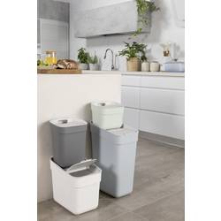 Nádoba s víkem ze 100% recyklovaného materiálu, ideální pro ideal třídění, třídění a skladování, s praktickým otvorem ve víku pro snadný přístup do skládaných nádob, může být umístěna buď na zeď/dveře nebo může být volně stojící