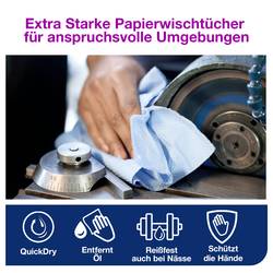 Bez správné utěrky může být pracovní místo bez tuku a špinavých nečistot velkou výzvou. Extra silné papírové utěrky nabízí vysokou savost, díky které rychle odstraní olej a kapaliny. Mimořádně silný design je založen na 3-vrstvé konstrukci, která chrání ruce před horkem a nečistotami a zajišťuje bezpečnější čištění. Naše modré utěrky jsou dodávány v ochranném a přenosném zásobníku, který zajišťuje snadnou přepravu a zaručuje, že máte vždy po ruce čistící utěrky.