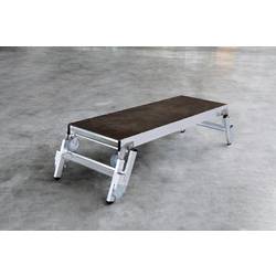 Lehká a stabilní hliníková konstrukce, skládací nožičky pro tři různé pracovní výšky (2.25 m / 2.50 m / 2.75 m), 65 mm hluboké, drážkované úrovně pro bezpečný nástup a sestup bezpečná a pohodlná práce na prostorném stání (1.70 x 0.60 m) Povrch zajištěný sítotiskovou deskou postačí pro dvě osoby a další pracovní zařízení a materiál a snadno se přepravuje, skladná role pro snadný postup z místa s protiskluzovou plastovou obuví maximální zatížení 300 kg