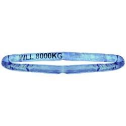 Kulaté smyčky z polyesteru odolné proti opotřebení s nosností 8.000 kg v modré barvě.