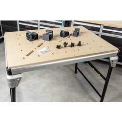695 x 1035 mm, velká pracovní plocha z 22 mm silného MDF se zatížitelností do 120 kg, je vhodná pro téměř všechny projekty s otvorem 20 mm pro použití upínacích příložek,