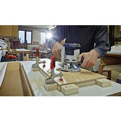 Svisle popruh s otevřeným Arm a waagrechter základní desky. Kvalitní olejům, 2-komponentní rukojeť s automatickým plynulé nastavení upínací výšky při téměř stálém pružnost. Nastavitelná upínací síla až 1100 N.