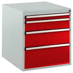 Manuflex SP1140.3003 Skříň zásuvek BASETEC stacionárně, Nutzhohe 500 mm se 4 přihrádkami, v rubínově červená RAL 3003