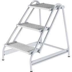 Pracovní plošina z hliníku stabilní svařovaná konstrukce trubky hloubka stupňů a velká nášlapná plocha pro bezpečné postavení protiskluzové plastové patky pro snadnou montáž (dodává se rozložené) volitelné pružinové válečky pro snadný postup z místa na místo. Horní nášlapná plocha: 150 x 300 mm v různých stupních a platinovém provedení pro maximální zatížení: 410 kg