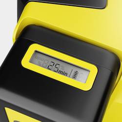 Výkonný 36 v motor, který je poháněn 2 li-Ion akumulátory 18 V. Technologie Real Time s LCD displejem: Zbývající doba nabíjení, zbývající doba nabíjení a kapacita akumulátoru. Akumulátorový vysavač pro mokré a suché vysávání s nejvyšší sací silou uvnitř zařízení Home & Garden Range.