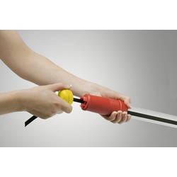 Větve lze řezat ve výšce až 5,50 m, obvykle vyžaduje jeden vodič. Tím se zvyšuje riziko nehod, a ne všechny části budovy jsou tak přístupné. Na rozdíl od těchto praktických zahradnické nůžky! Pevně namontovanou teleskopickou násadu lze vysunout mezi 2,40 a 4,40 m pomocí rastrace otvorů, řezná hlava je nastavitelná pro maximální flexibilitu o 225°. Díky barevnému provedení zaručuje dobrou viditelnost stromu a zároveň zaručuje bezpečnou a přesnou práci ve výšce. Řezání větví do rozsahu 35 mm lze provést velmi pohodlně táhnutím spodního tlačítka. Pro optimální účinnost při práci je přitom volba mezi vysokorychlostním řezem (krátká cesta pro rychlé stříhání tenkých větví) a vysoce výkonným řezem (dvojitá cesta, k tomu větší pákový efekt). Chcete-li pracovat vždy nejšetrněji k energii, snížíte nepřilnavé čepele zatížení při stříhání a ulehčují čištění po ukončení práce