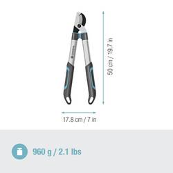 Ergonomické pákové nůžky GARDENA GARDENA EasyCut s váží pouhých 900 g a disponují páčkou z hliníku v ergonomickém provedení tvaru kapek pro pohodlné stříhání zeleného dřeva bez námahy.