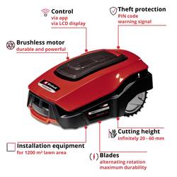 Einhell FREELEXO 1200 LCD BT patří do řady vysoce výkonných „Power X-Change“, která poskytuje neomezenou flexibilitu v rámci rodiny. Lithium-iontové akumulátory řady lze kombinovat se všemi systémovými zařízeními. FREELEXO lze ovládat přes App Bluetooth® a můžete přitom robota samostatně nastavit. Kromě toho má k dispozici intuitivní klávesnice s LCD displejem. Pomocí aplikace lze přesně naprogramovat pracovní dobu Einhell FREELEXO. Odolné proti krádeži je robot v podobě kódu PIN a výstražného signálu. Návrat do nabíjecí stanice a také nabíjení probíhá automaticky v případě potřeby. Díky režimu multi zón je tento robotická sekačka vhodná i pro komplexní a křivolaké zahrady. Bezpečnostní senzory mají nárazové, sklopné a zvedací senzory, takže robot samostatně rozpozná překážky. Integrovaný dešťový senzor. Robotická sekačka má nastavení výšky 20 mm až 60 mm a je vhodná pro stoupání až do 35 %. Držadlo zajišťuje pohodlné přenášení. FREELEXO 1200 LCD BT obsahuje vše potřebné pro instalaci a provoz robota Einhell z řady FREELEXO was. Je navržen pro trávník o rozloze až 1200 m². Součástí dodávky je akumulátor o kapacitě 5,2 Ah, ohraničovací drát 210 m, 300 upevňovacích háků, 3 náhradních čepelí a 4 spojovacích svorek.