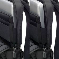 Vyjímatelná přihrádka na notebook je vybavena paměťovou Foam a díky zařízení Microsoft Surface se přizpůsobí až 15" automaticky. Díky technologii anti-slip Technology, která zabraňuje vyklouznutí zařízení z batohu, získáte optimální držák pro váš notebook. Nejlepší ochrana pro tablety do 12.9". Přední kapsa s přívěškem na klíče a kapsami vám zajistí pořádek pro osobní potřeby a nabízí místo pro další mobilní příslušenství. Maximální komfort při nošení díky ergonomickému polstrování na zádech, délkově nastavitelnému popruhu přes rameno, pohodlně tvarované držadlo a připevňovací páska na kolečkách. Skrytá kapsa na zip na zadní straně pro bezpečné uložení cestovního pasu, tašky na dopisy nebo jiných cenných předmětů. Boční kapsy pro uložení stínění nebo lahve s vodou. Dno tašky je z voděodolného materiálu.