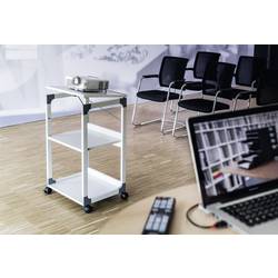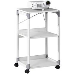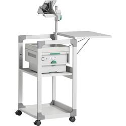 Pojízdný vozík pro projektor nebo projektory Overhead se třemi melaminovými povlaky, 19 mm silnými podlahami. Spodní spodní povrch je pevně stanoven a střední se dá nastavit v intervalech 32 mm. Horní deska má nastavitelný úhel sklonu pro použití úředníkům. Pro použití projektorů OHP lze do stran sklopit o 180°. Rám z pevné, epoxidové oceli s plastovými rohy vyztuženými skelnými vlákny.