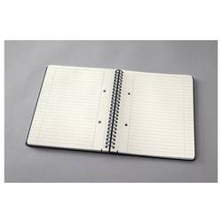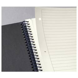 Quickpocket na zadní straně pro uložení dokumentů; stabilní kovová dvojitá spirála, plné navrtávání, 4 násobné děrování, záhlaví pro datum.