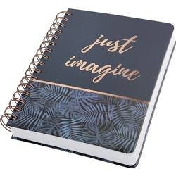 - Úžasně pěkná a módní poznámková kniha se skleněnou kostrou a lesklým fóliovým potiskem „just imagine“, hardcover, připojení drátěného hřebenu a Quickpocket na zadní straně