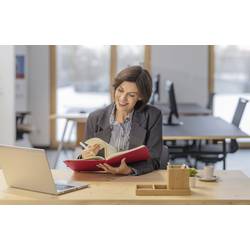 Mnoho praktických funkcí vás přesvědčí: Například roztažitelným putkem, který vždy po ruce vhodnou tužku, poznámkové listy můžete jednoduše předat dál díky perforovanému poznámkovému lístku. Uspořádejte své položky přehledně tak, že do obsahu přenášíte číslování stránek. Velmi kvalitní design a extrémně dlouhá životnost.