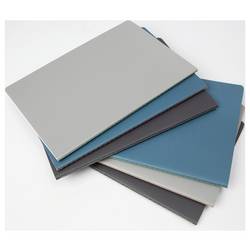 - Kompletně vegane poznámková kniha s barevnou signalizací „Dark Grey / Light Grey“ v sadě 2 ks s měkkým potahem v tmavě šedé/světle šedé barvě, formát A5 (14,80 x 21 x 0,50 cm), linkovaný, s 68 stranami