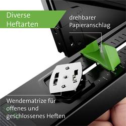 Novus B 56 re+new Blockhefsheft, provedení druhu sešití: Pevný, výkon sešívačky: 200 listů, max. Hloubka přiváděcího rozsahu: 75 mm, typové označení sponek: 23/8 - 23/24 SUPER, plniva technologie: Mechanismus pro skokovou mechaniku, udržitelný s 82% podílem recyklovaného obsahu, systém proti zablokování (ABS), reverzní matrice pro paralelní a obtokové sešití, materiál: Kov / plast, certifikáty a schválení: Zkušební značka GS, barva: Černá