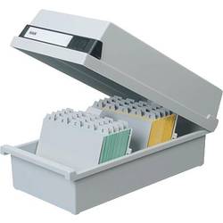 - Kartotéční krabice DIN A4 na šířku, pro 1.300 karet, včetně 2 opěrných desek a posuvných zabezpečení