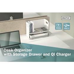Praktický a elegantní stolní organizér s nabíječkou Qi zajistí aproztické pracoviště. Nabízí také nabíječka pro smartphony Qi. Kromě elegantního designu nabízí také praktickou odkládací plochu pro dokumenty, knihy atd. a také zásuvku pro individuální nastavení rozdělení. odkládací plochy jsou vystlyzované s plstěným designem.