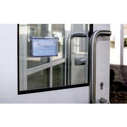 Praktický držák na vizitky z venku je vaše uchycení ke klientům. Připevněte jej na vstupní dveře obchodů, restaurací, ordinací, kosmetiky nebo kadeřnických salonů a prezentujte vaše vizitky i mimo čas roztřepení. Celkově nabízí držák na vizitky z venku prostor až pro 60 karet o velikosti až 96 x 60 mm. Vysoce kvalitní a stabilní akryl kombinuje mnoho výhod: Je elegantní jako sklo, ale lehký a odolný jako plast. Díky snadno uzavíratelnému krytu s prohlubněmi pro prsty a zešikmenému povrchu lze vizitky snadno vyjmout.