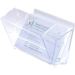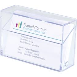 Průhledné pouzdro na vizitky z tvrdého plastu s praktickou dvojitou funkcí: V uzavřeném stavu slouží jako bezpečné úložné pouzdro a odklopný stojánek pro prezentaci vizitek. Do boxu se vejde až 100 vizitek (max. 86 x 56 mm). Vnější rozměry činí 100 x 70 x 10 mm (Š x v x H).