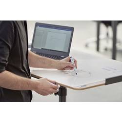 Stabilní: Nosná plocha o tloušťce 12 mm a tloušťce melaminového potahovaného dřevěného vlákna v dubovém provedení a tabule z 0,8 mm silné oceli, s plastovým povlakem (bílá RAL 9003).