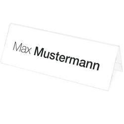 Jmenovka na stůl pro skleněnou prezentaci. Stabilní a oboustranně čitelný díky tvaru střechy.