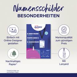 Kvalita od odborníků: 50 průhledných štítků se jménem Avery 4834XL ve formátu A6 105 x 148 mm včetně 52 zasunovacích štítků jsou ideální pro časté nebo opakované použití na akcích, seminářích a konferencích a jsou ideální pro uložení dalšího obsahu, jako je například velké logo firmy nebo reklama, např. na veletrzích na jmenovce.