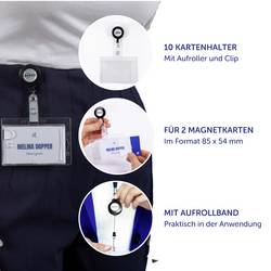 - 10 průhledné krytky pro 2 ID karty s navíjecím mechanismem a klipem