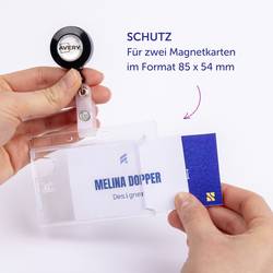 Kvalitní provedení: 10 průhledné krytky s dvojitým navíjecím mechanismem a sponou 4827 pro 2 karty od společnosti Avery Zweckform ve formátu 90 x 54 mm jsou praktické a flexibilní při manipulaci a díky trvanlivému plastovému pouzdru jsou ideální pro dlouhodobé použití. Díky formátu 90 x 54 mm se perfektně hodí všechny standardní karty. Pomocí spony lze pouzdro na doklady snadno připevnit na oblečení nebo kapsy.