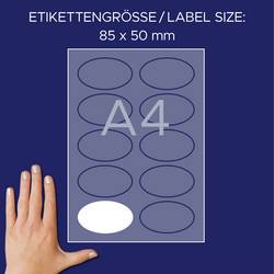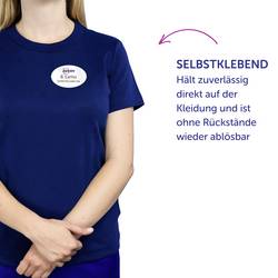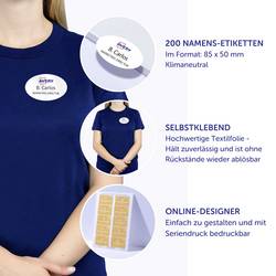 Oválné jmenovky z pružného materiálu fólie spolehlivě drží na oblečení a textiliích a lze je beze zbytků opět odstranit. Zadní strana štítku s názvem umožňuje vypalování názvu a nosné fólie pro pozdější použití. Textilní štítky nejsou vhodné pro kůži, hedvábí, samety a další citlivé textilie. Jmenovky nabízí zaručeně vykrojený tisk na všech běžných inkoustových tiskárnách. Takto efektivně pracujete bez stresu a vytvoříte tak drahocenný čas pro skutečně důležité věci.