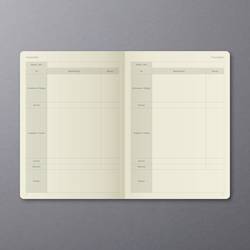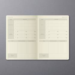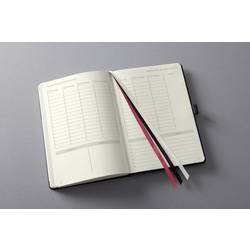 Černý týdenní plánovač Conceptum, nedatovaný, s německým vnitřním layotem. Tvrdé desky s drážkovaným plastovým povrchem. Obsahuje 192 stran včetně poznámek (částečně perforované pro oddělení sporáků). Papír krémově zbarbý. Nedatované Kalendarium zahrnuje 53 týdnů. Ukazuje vždy jeden týden na dvou stranách a lze jej flexibilně a individuálně strukturovaně. Kromě přehledného vodního kamene je k dispozici mnoho praktických informací, např. Měsíční přehledy, cílové a reflexní stránky, finanční plánovače, hesla a mnoho dalšího. Mezi další vlastnosti patří putovní poutko, zavírání na gumičku, Quickpocket, archivační kapsa až pro 10 vizitek a 3 kreslicí pásky pro ještě lepší organizaci. S nálepkami k organizování a individualizaci a praktickému bookletu pro individuální plánování úspěchu. Velikost knihy je podobná normě DIN A5. Certifikace PEFC.