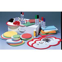 10 moderačních vín 25 x 42 cm, 500 obdélníků 9,5 x 20,5 cm, 100 rovin 11 x 19 cm, 100 kruhů Ø 9,5 cm, 100 kruhů Ø 14 cm, 50 kruhů Ø 19,5 cm, všechny karty jsou barevně roztříděné v bílé, světle modré, červené, žluté, zelené a oranžové, Vždy 240 vyznačovacích bodů v červené a zelené barvě, 20 markerů na flipchart, 4 markerů Jumbo (červená, zelená, modrá, černá), 1 lepicí tyčinka, 200 připínáček s kulatou hlavou barevně roztříděných