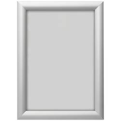 Sklopný rám pro montáž na stěnu včetně předvrtaných upevňovacích otvorů. Lze použít ve formátu na výšku i na šířku. Vložky lze snadno vyměnit díky integrovanému zacvakávacímu zámku vpředu. Ze stříbrného eloxovaného hliníku se zadní stěnou Styrol.