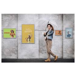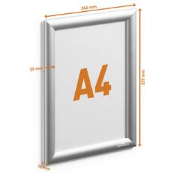 Odolný výměnný rám pro rychlou výměnu motivu díky osvědčené skládací technice. Díky gumovému těsnění a ochranné fólii odolné proti povětrnostním vlivům. Odolný hliníkový skládací rám odolný proti povětrnostním vlivům, eloxovaný stříbrně. Rychlá a snadná výměna motivu díky osvědčené technologii klapek. Vnitřní gumové těsnění zabraňuje vniknutí vody (ochrana IPX4 podle DIN EN 60529). Reflexní nízkoreflexní, UV odolný, ochranná fólie nařezaná na pokos. Zakryté otvory pro montáž na zeď k přišroubování nebo do závislosti nebo trvalé připevnění pomocí přiložených samolepek