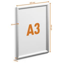 Odolný výměnný rám pro rychlou výměnu motivu díky osvědčené skládací technice. Díky gumovému těsnění a ochranné fólii odolné proti povětrnostním vlivům. Odolný hliníkový skládací rám odolný proti povětrnostním vlivům, stříbrná eloxovaná, snadná výměna motivu díky osvědčenému pogumovanému těsnění umístěnému v odklopné technice brání proniknutí vody (stupeň krytí IPX4 podle DIN EN 60529) reflexní, UV odolné ochranná fólie