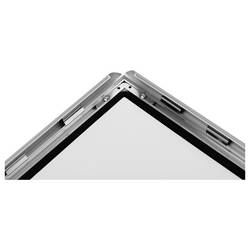 - Odolný hliníkový skládací rám odolný proti povětrnostním vlivům, eloxovaný stříbrně. Rychlá a snadná výměna motivu díky osvědčené technologii klapek. Vnitřní gumové těsnění zabraňuje vniknutí vody (ochrana IPX4 podle DIN EN 60529). Reflexní ochranná fólie odolná proti UV záření
