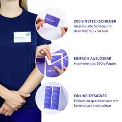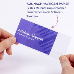 Štítky s vysokou kvalitou papíru FSC® umožňují snadné vkládání štítků do štítků s názvem, díky kterým extra perforace můžete štítky po vytisknutí vytisknout čistě a rychle. Zásuvné štítky zaručují vykročení tiskárny po všech běžných tiskárnách. Takto efektivně pracujete bez stresu a vytvoříte tak drahocenný čas pro skutečně důležité věci.