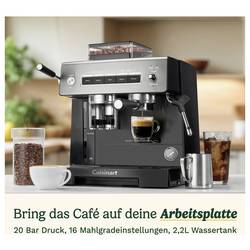 Vychutnejte si kávu v kvalitě Barista doma s Cuisinart® espresso Bar Grind & Brew. Tento multifunkční all-in-one stroj nabízí plnou kontrolu 16 nastavení stupně mletí, integrovaným kónický mlýnek a tlak 20 bar pro aromatické, plné espresso - pokaždé. Funkce Cold Extraction umožňuje snadnou přípravu ledové kávy, zatímco parní nástavec dokonale napění mléko pro latte a cappuccino.