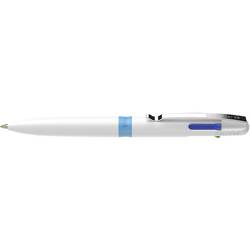 4barevná propiska s kuličkovým perem černá, červená, modrá a zelená, barva pouzdra: Bílá/světle modrá. Model Take 4 nabízí perfektní řešení 4 v 1 pro plánování, organizování a strukturování. Pomocí barevného tlačítka lze snadno a rychle přepínat mezi jednotlivými barvami a přitom si vše pod kontrolou. Technologie Viscoglide® zajišťuje velmi měkký a klouzavý dopis s tloušťkou čáry Pouzdro je vyrobeno z 92% recyklovaného plastu, šetrného k životnímu prostředí a účinně využívá zdroje. Náplň do 4 barev lze doplnit náplní Take 4. To redukuje odpad a zajišťuje tak stále více zábavy při psaní. Všech 4 barev psaní je dokumentováno podle ISO 12757-2. Díky pevné kovové sponě se model Take 4 vejde do každé kapsy nebo do poznámkového bloku.