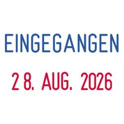 Jednoduché datové razítko s textem. Kombinuje datum ve formátu den/měsíc/rok s textem ve formátu obdélníkového formátu. Datum je platné 10 let.