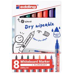Edding 361 popisovačů na bílé tabule je k dispozici v 8 různých barvách a lze na ní nalézt další čárové šířky jako edding 360 a Edding Edding 363 Whiteboardfier