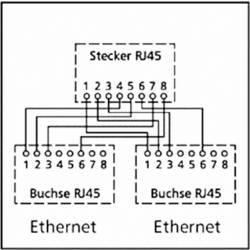 2x ethernetový obvod Cat 5: 1x 8 konektor na 2x 4 pólový.