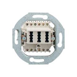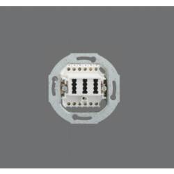 Telekomunikační připojovací jednotka pro 2 telefony a 1 přídavné zařízení, 3 x 6-pólové, 2 x 6 šroubové kontakty, s rozpínacím drátem, čistě bílá (podobně RAL 9010), 70 x 70 x 29 mm, 53 g.