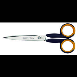 Díky jednostrannému mikroozubení (0,5 ks) nemůže tkanina sklouznout, takže umožňuje přesné řezy. Dvoukomponentní plastová rukojeť ze zesíleného skelnými vlákny a odolná proti zlomení s vložkou z měkké pryže (PP+TPE)