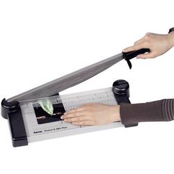 Páková řezačka pro papír a fólie. Příměrné pravítko s vysokou ochranou prstů pro optimální držení řezného produktu.