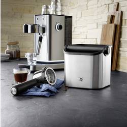 Díky kvalitnímu krytu z Cromarganu® představuje nádoba na odpad WMF Lumero Espresso praktický a stylový doplněk k sáčkovému držáku WMF Lumero Espresso. Hrana obalená silikonem tlumí hluk při posouvání síta, silikonový kroužek na spodní straně zajišťuje neklouzavou stabilitu. Vyjímatelná nádoba z plastu