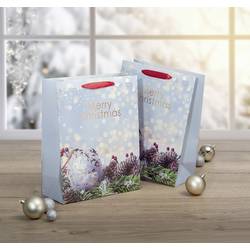 Velká brašna „Charmful Christmas“ z papíru (matná lesklý fólie), formát 26 x 33 cm, modrá, zelená, modrá