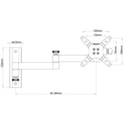 Nástěnný držák se 2 klouby pro naklápění a natáčení do požadované pozice. Díky teleskopické funkci lze nastavit monitory podle individuálních potřeb. Je výkyvný až o 180° (doleva nebo doprava) a sklopný až o 30°. Možnosti naklápění a otáčení jsou odvislé od velikosti TFT/LCD monitoru a vzdálenosti od stěny. Nástěnný držák monitoru je vhodný pro všechny monitory do velikosti úhlopříčky 76 cm (30") se standardizovaným (VESA) rozestupem otvorů 75 x 75 či 100 x 100 mm.