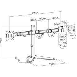 CHYTRÝ DESIGN - v kombinaci s technickou šikovnostíVedle sebe se nacházejí dvě ploché obrazovky. Zvláštností stojanu je, že na rozdíl od jiných držáků není nutné jej připevnit na stůl a je přitom charakteristický prostorově úsporným designem a bezpečně drží. 43 až 81cm (17“ – 32“) mohou být velké obrazovky upevněny na rameno obrazovky, které lze zatížit až 9 kg. Nastavitelná výška stojanu přispívá k ergonomickému držení těla.Ergonomický díky nastavení výškyVESA deska s možností otáčení v rozsahu 360°: Pro formát na výšku i na šířkuProstorově úsporný stojánekVolně výkyvná ramena