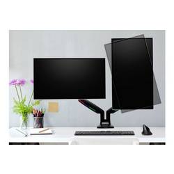 Stabilní design je vhodný pro ploché nebo zakřivené monitory o velikosti 13" až 34" a hmotnosti až 9 kg. Obě ramena monitoru je spolehlivě drží v každé pozici.